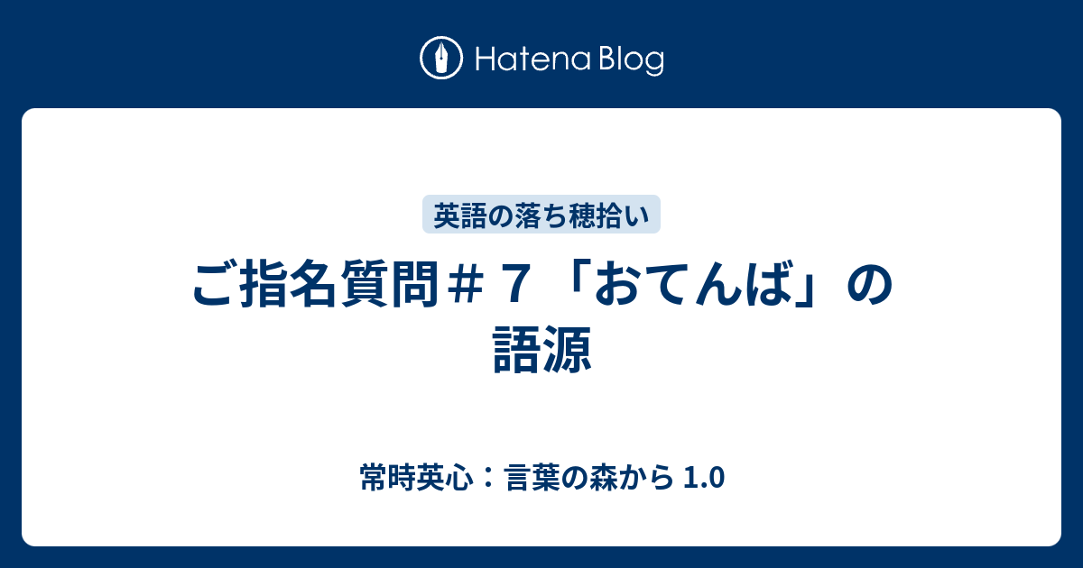 ご指名質問 7 おてんば の語源 常時英心 言葉の森から 1 0