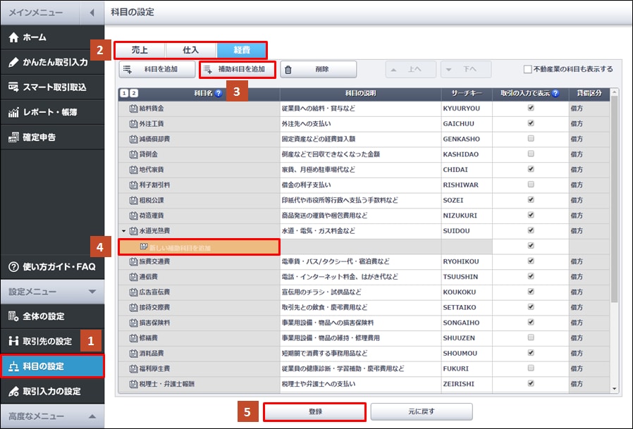 補助科目の追加 やよいの白色申告 オンライン サポート情報